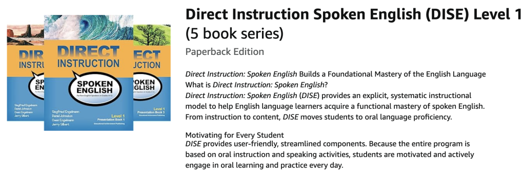 International Orders: For our customers outside the U.S., you can now find Level 1 of DISE available as a print-on-demand option through your local Amazon site. Just search “Direct Instruction Spoken English.” Level 2 will be available early 2026. If you still wish to order directly through EAP, please fill out this International Order Request Form so that we can get back to you with shipping options and prices. Digital orders can be placed through the online store.
